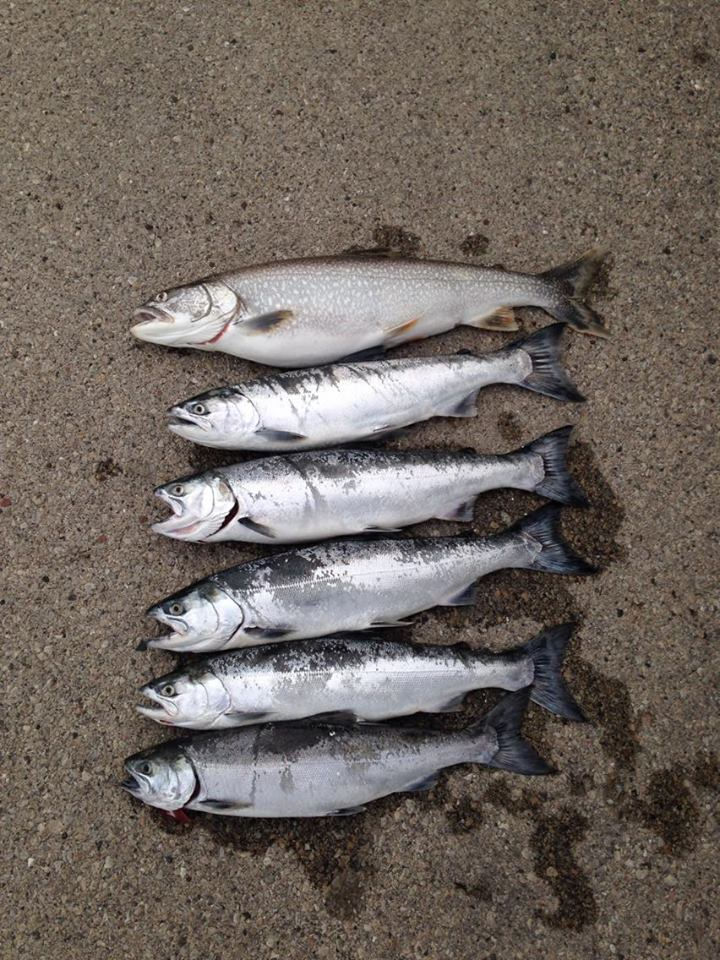 I finally got a break in the everything but west wind on Tuesday so I decided to capitalize on it. My tournament partner and I hit Lake Michigan around 0900 and after checking quite a few areas from 40fow to 15fow with nothing to show for it, I decided to make a run a little north and good thing I did! It didn't take long for my Lowrance to light up with bait and I knew it was only a matter of time before one of my flicker shad where going to fire. All of a sudden I head one of my Shimano Talora's fire with a nice 3-4lb coho tail dancing behind the boat then it was game on! The first pass we stuck two cohos and a lake trout while missing a handful of other hits. With fishing turning on I decided to keep making figure 8's through the area and the final total was 5 cohos and the one lake trout in the box along with missing a bunch of other fish and one decent chinook right behind the boat after it decided to run into my inside board. Only a few more things to tweek and "breaking rods" will be ready for Salmon-A-Rama, Brew City and the Burnout Bash.